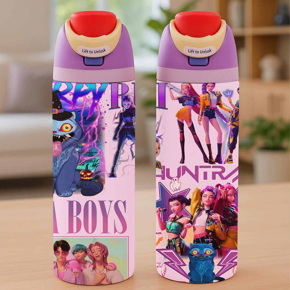 1pc 19/24/32oz Stainless Steel Vacuum Insulated Tumbler with Lid and Straw, KPop Demon Hunters x Gen-Z Cat Vibe, Hot 12H / Cold 24H, Holiday Tumbler for Halloween Christmas, Spooky Cat Demon Hunter Travel Cup, Insulated Travel Drinkware — Perfect Gift