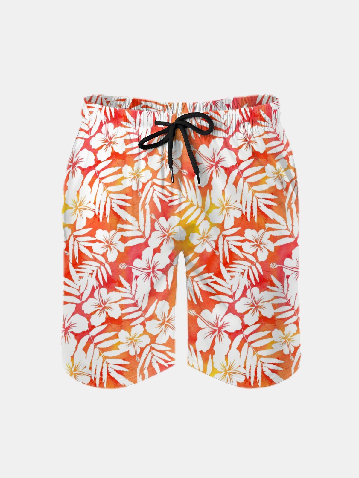 Men's Swim Trunks Hawaiian Tropical Hibiscus Flower Beach Shorts with Pockets