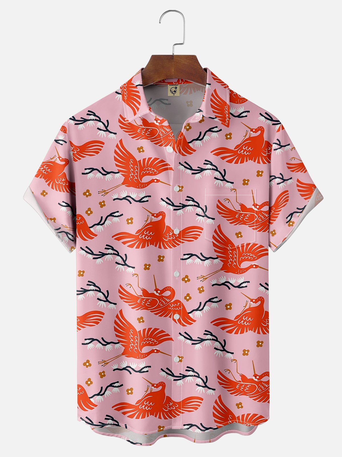 Moisture Wicking Ukiyo-e Crane Chest Pocket Hawaiian Shirt