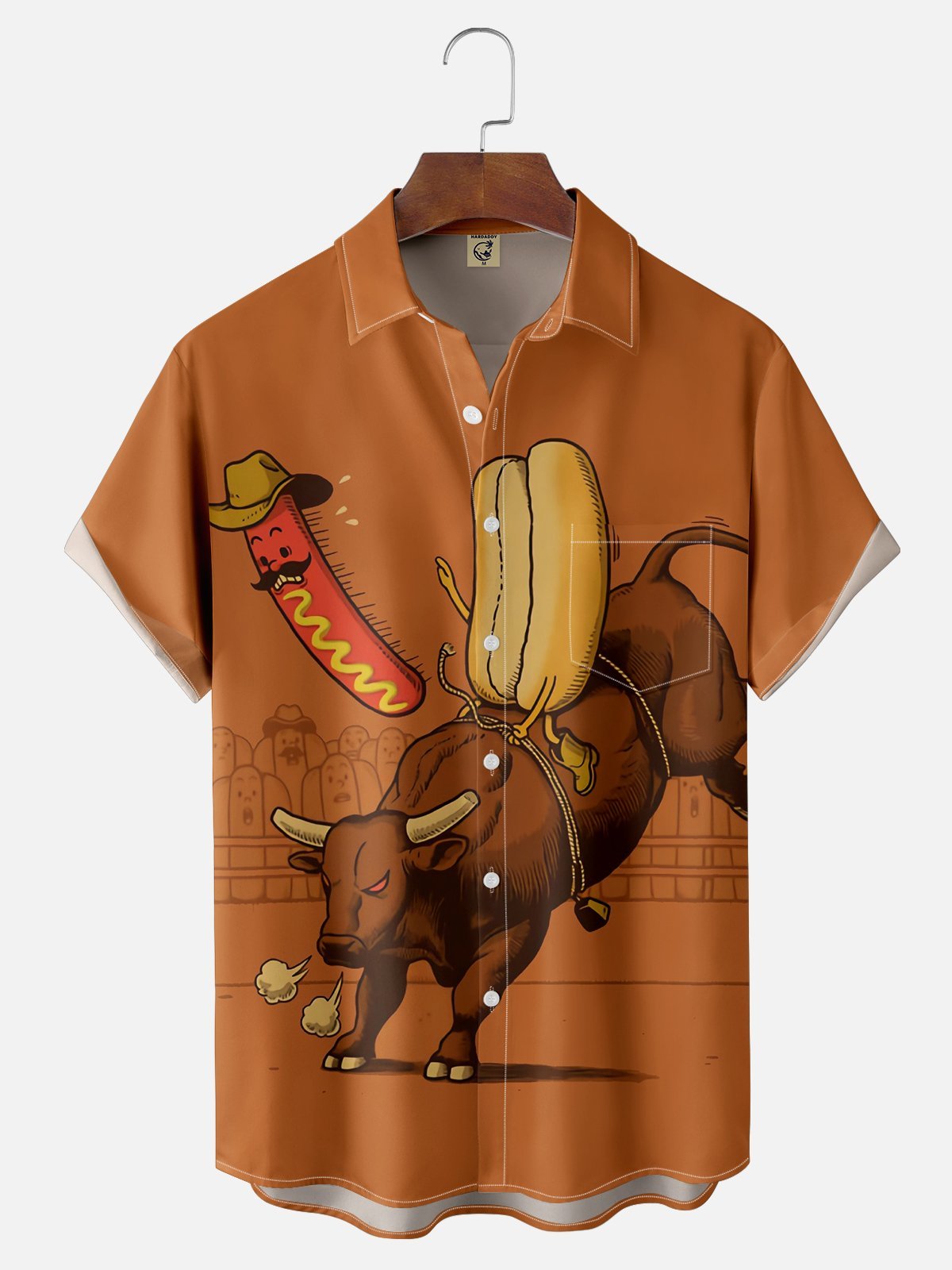 Moisture Wicking Western Hot Dog Cowboy Chest Pocket Hawaiian Shirt